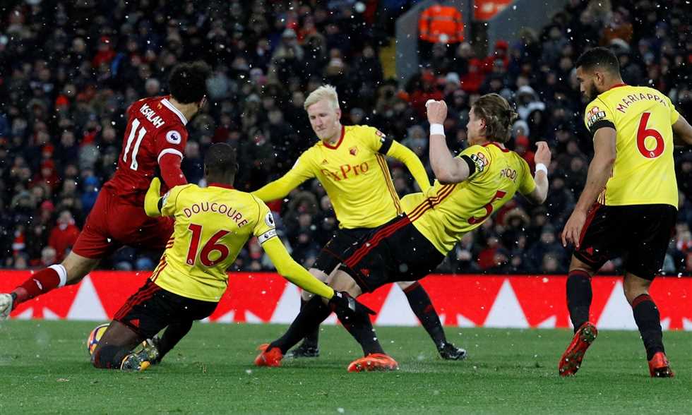 المواجهة الأولى كانت في 17 مارس 2018 بين ليفربول وواتفورد في البريميرليج، حيث ساهم صلاح في خمسة أهداف بالتسجيل أربع مرات وتقديم تمريرة حاسمة واحدة ليساهم في جميع أهداف الريدز في المباراة التي انتهت بانتصار رفاق صلاح بنتيجة (5-0).